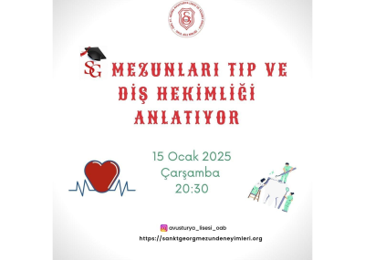 15 Ocak 2025 Çarşamba akşamı saat 20.30'da Tıp ve Diş Hekimliği okuyan mezunlarımız tecrübelerini sizlerle paylaşacak.